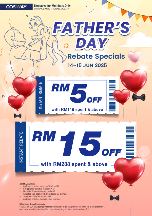 Cosway (M) Sdn Bhd reserves the exclusive right to amend, delete and/or vary any of the above Terms and Conditions without prior notice. |