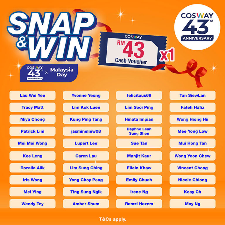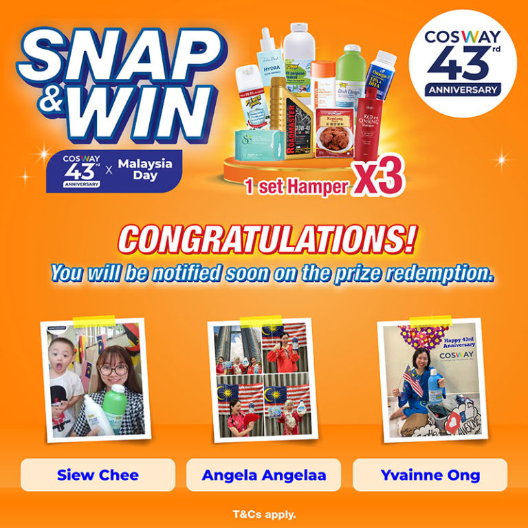 | The list of winners will be announced on 4th October 2022 via Cosway’s website at cosway.com.my and Cosway’s social media platforms on Facebook and Instagram. | |||||||||||||||||