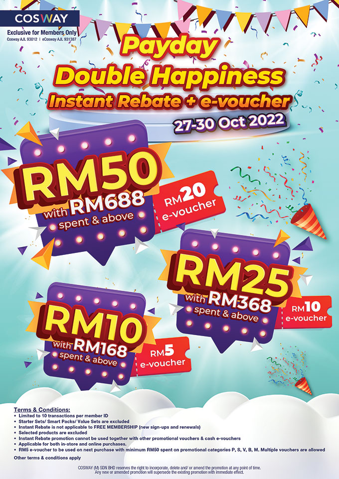 Payday Double Happiness Instant Rebate + e-voucher (27 – 30 Oct 2022)