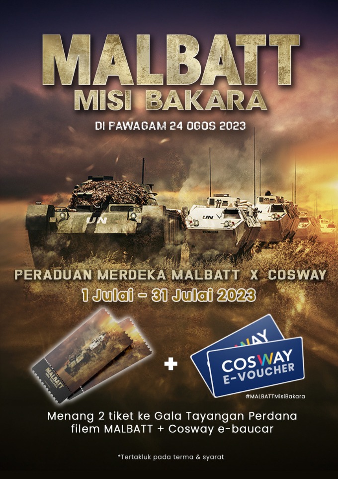 | 4. | PRIZES 1 pair of MALBATT Gala Premiere Tickets & Cosway e-voucher worth RM20* (x15 winners) *With min. spend RM50 |