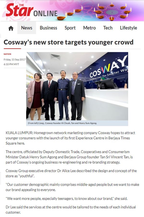 The ceremony was officiated by YB Dato’ Henry Sum Agong, the Deputy Minister of Domestic Trade, Co-operatives and Consumerism and Tan Sri Dato’ Seri Vincent Tan, founder of Berjaya Corporation Berhad, with 400 Cosway local and international business leaders, influencers and guests who witnessed the grand launch. “Since 2016, Cosway started to re-brand, re-engineer and re-invent its business model to reach out to new younger generation consumers. Cosway seeks to empower consumers both online and offline and the Experience Centre can do just that,” Tan Sri Vincent Tan said.